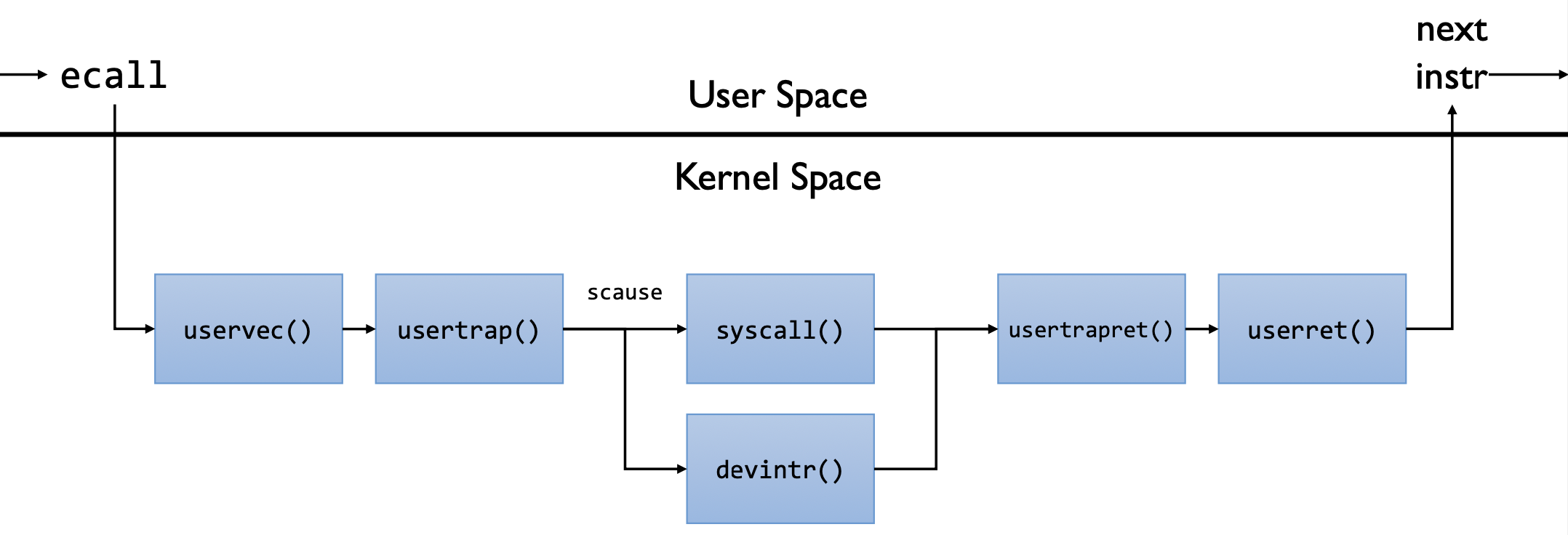 - User Trap -> Syscall ํธ์ถ