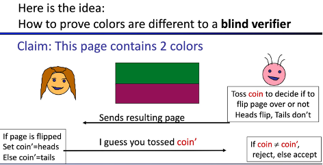 - ๊ฒ์ฆ์ ๋์ก๋ ๋์ A์ ๊ฒฐ๊ณผ == ์ฆ๋ช ์ ์ถ์ธก -> accept, ๋ค๋ฅด๋ฉด reject (P ๊ฑฐ์ง์ด๋ฉด 1/2 ์ฐ๊ธฐ ing)